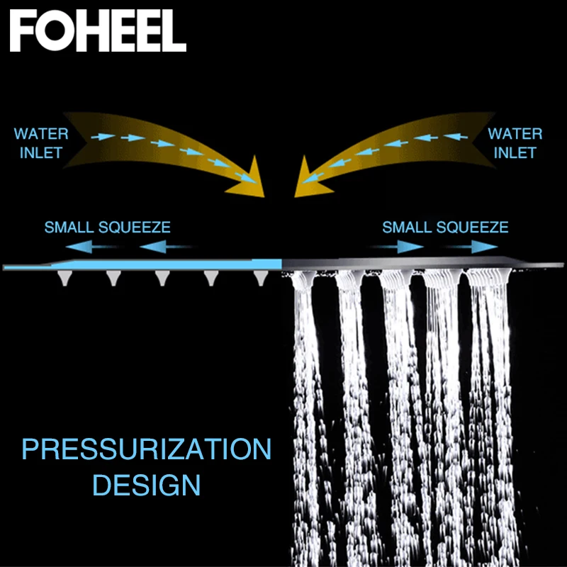 FOHEEL 8/10/12/16 inch Rainfall Shower Head Square Chrome Ceiling Rain Stainless Steel Showerhead R
